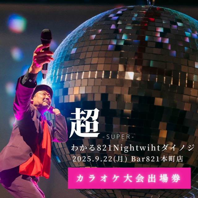 超わかる821 Night カラオケ大会出場券 超わかる821 Nightで行われるカラオケ大会の出場券です。 あなたの十八番を聞かせてください! 優勝者にはささやかなプレゼントも・・・!? ※別途 超わかる821 Nightの参加券が必要です。 日程:2025.9.22(月) 時間:20:30~22:30 場所:Bar821本町店 (明るく元気なバニーちゃんたちのお店です。女性にも是非一度来ていただけたら嬉しいです!) 541-0054 大阪府大阪市中央区南本町3丁目6-1 ファラン船場心斎橋Bldg. 5F チケットの発送はございません。 入口にて購入画面を見せていただくか、お名前をお伝えください。 ※法人名で登録されている場合は、法人名をお知らせください。 22:30以降のご滞在は追加料金が発生いたします。ご了承ください。